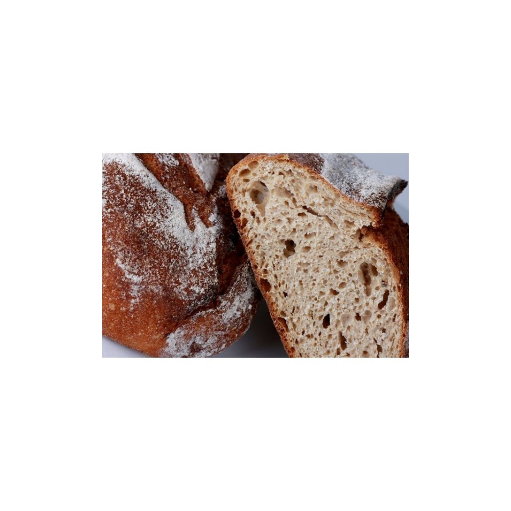 Farine de Khorazan Kamut 46%, eau 37.10%, levain de Khorazan Kamut 15.90 %, sel 1%
