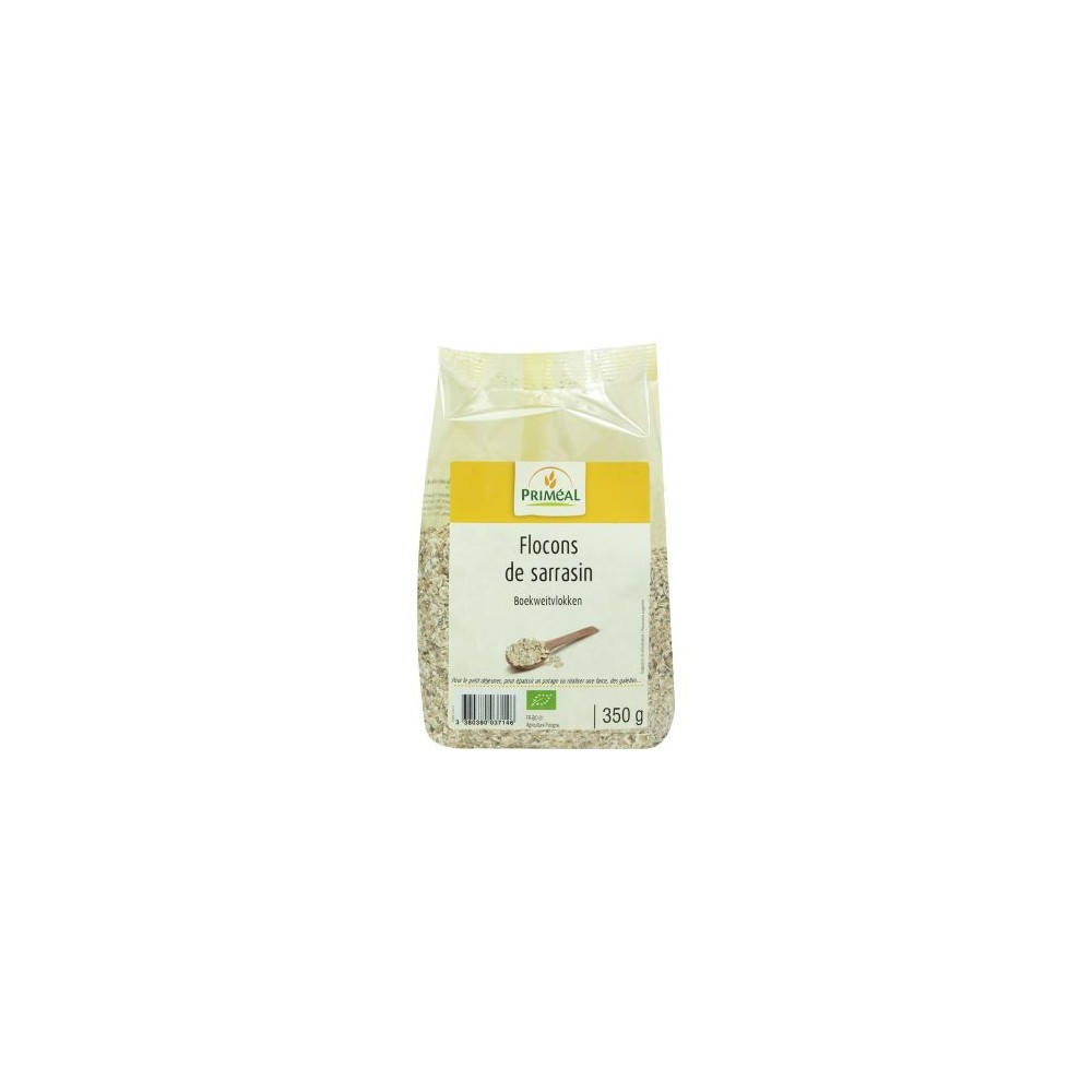 Flocons obtenus après cuisson vapeur de grains de sarrasin de l'espèce Polygonum Fagopyrum dont la pellicule seule a été éliminée.