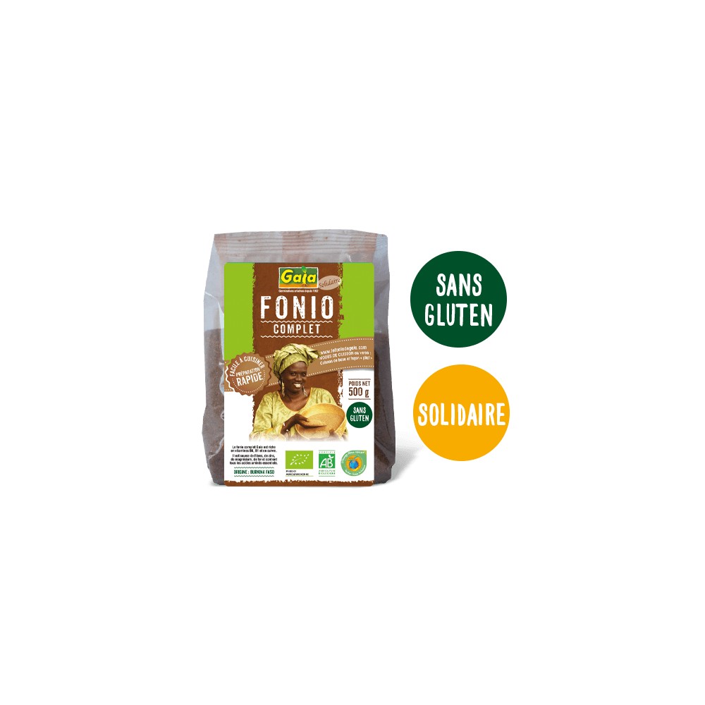 Mode de cuisson de base :Cuisson à l’eau : Versez 1 volume de fonio complet dans 2 volumes et ½ d’eau bouillante salée. Reportez le tout à ébullition puis baissez le feu. Laissez cuire à feu très doux pendant 7 à 8 minutes puis remuez et laissez encore 2 minutes avant d’éteindre le feu.