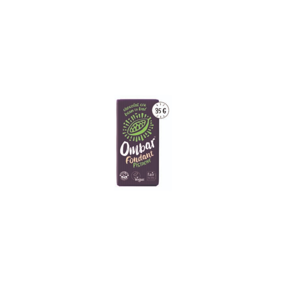 Du cacao cru avec un coeur fondant? C’est ce que Ombar a réussi à concocter : un Fondant Pistache… au coeur Pistache délicat et crémeux, avec un enrobage chocolat 60%, noir et classique..