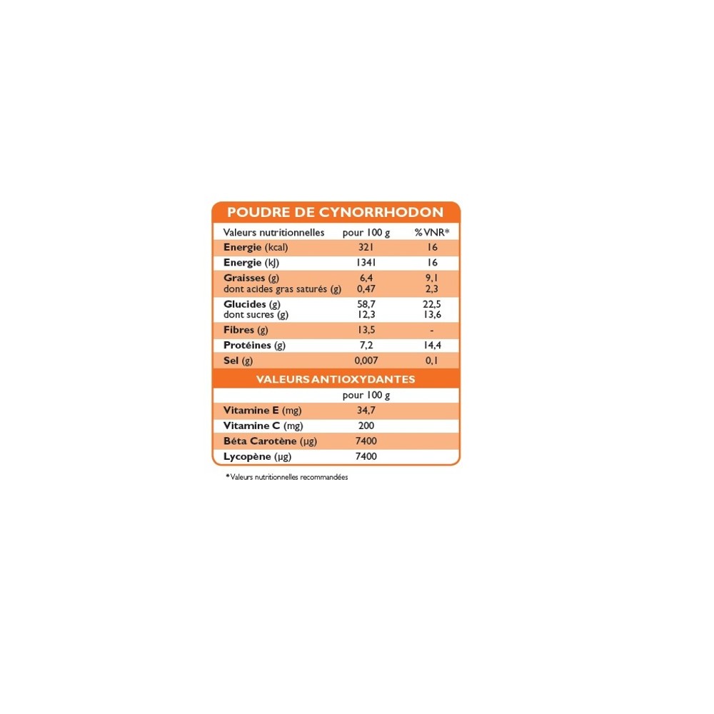 100 % poudre de Cynorrhodon (Rosa Canina), fruits déshydratés à froid.