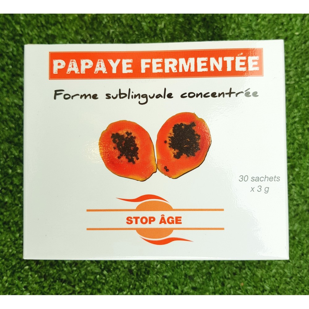 Extrait fermenté de papaye : c'est un supplément nutritionnel, entièrement naturel, sans pesticide, obtenu à partir d'un procédé de fermentation de la pulpe de fruit sans additif et sans conservateur.