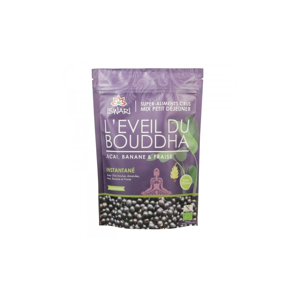 L’Eveil du Bouddha est une préparation instantanée crue, végétale et sans gluten pour le petit déjeuner. Prêt immédiatement en ajoutant simplement votre boisson préférée (riz, amande, eau etc…), Il combine le goût et la puissance nutritionnelle des supers-aliments. Chia et Lin moulus (importante source végétale d’oméga 3 & 6), Açaï et Lucuma