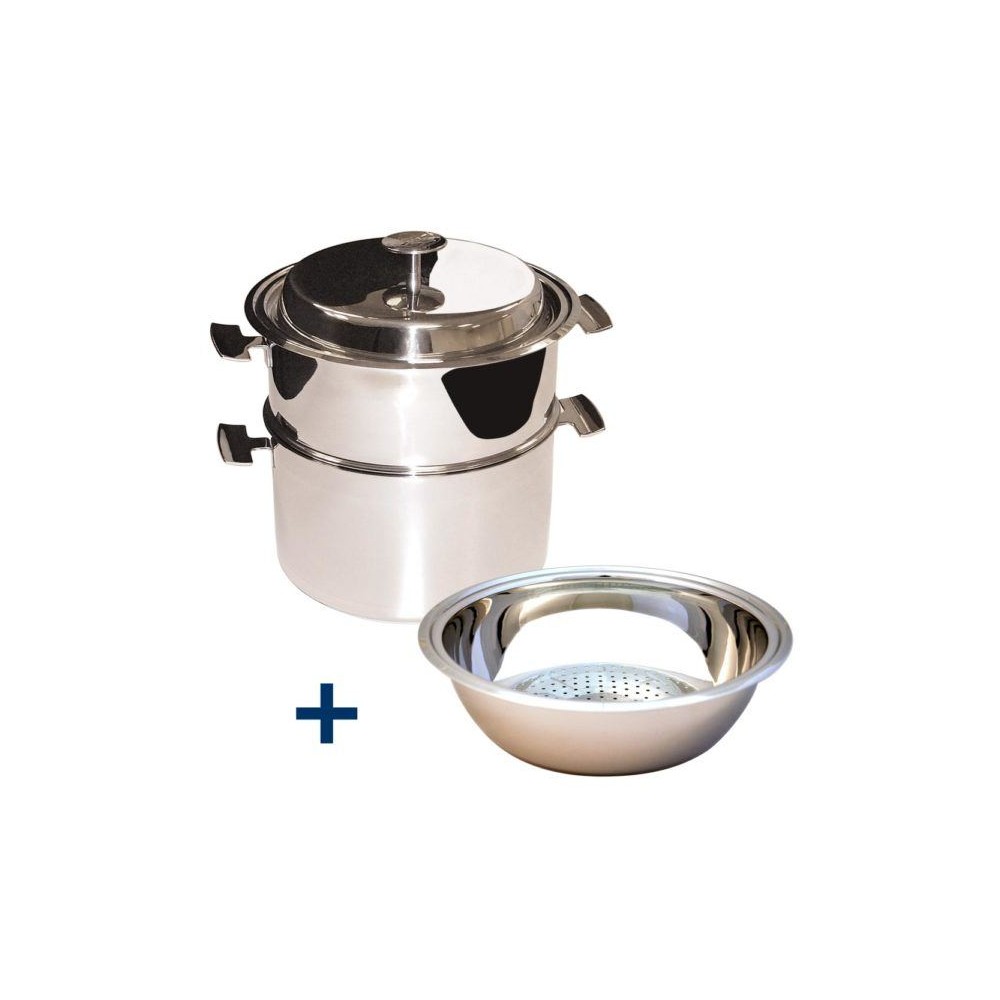 Il offre un gros volume de cuisson à la fois dans la marmite pour les cuissons douces, dans la passoire pour les cuissons vapeur et le légumier pour les cuissons au bain marie.
