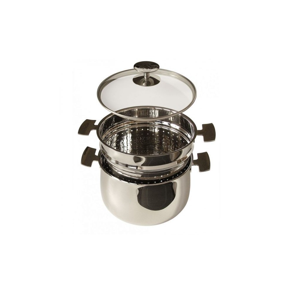 Il est composé d’une passoire en inox, d’un couvercle en verre et d’une marmite spécifique en inox 18/10.