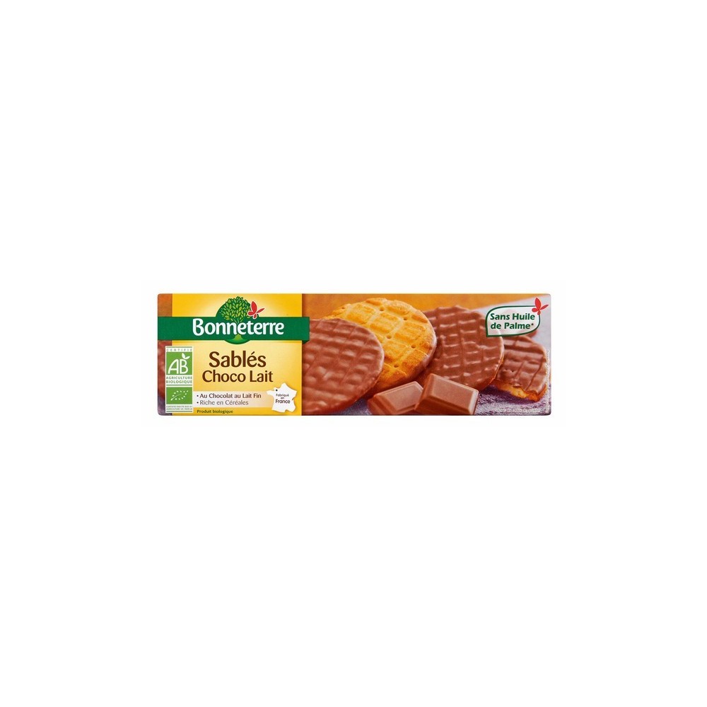 Céréales* 52% [farine de blé*, flocons d'avoine*, grains de riz soufflés* (riz*, avoine*, sel), pétales de maïs*)], chocolat au lait* 25% (sucre*, poudre de lait entier*, beurre de cacao*, pâte de cacao*, extrait de vanille*), sucre roux de canne*, beurre*, huile de colza*, poudre de lait écrémé*, poudre à lever: carbonates d'ammonium, sel marin, extrait de vanille*, oeufs en poudre*, sucre blanc de canne*.