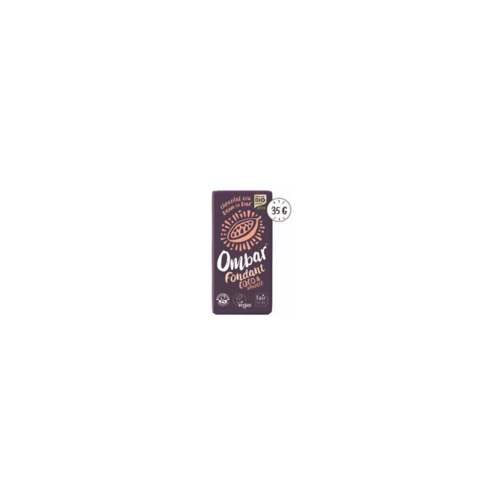 Crème de coco* (37,4 %), sucre de fleur de coco*, cacao cru*, huile de coco*, beurre de cacao*, vanille moulue* (1,1 %).