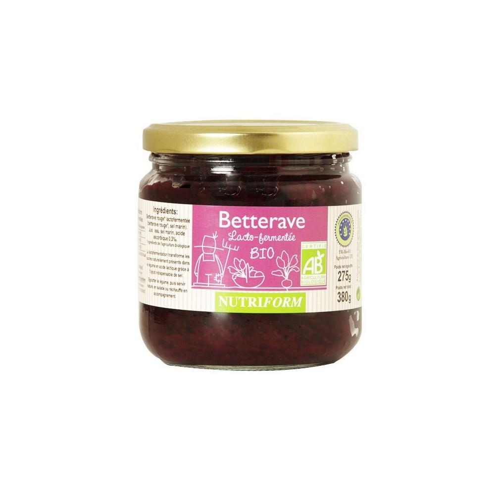 Betterave rouge* lacto fermenté, Eau, Sel marin, Acide ascorbique.