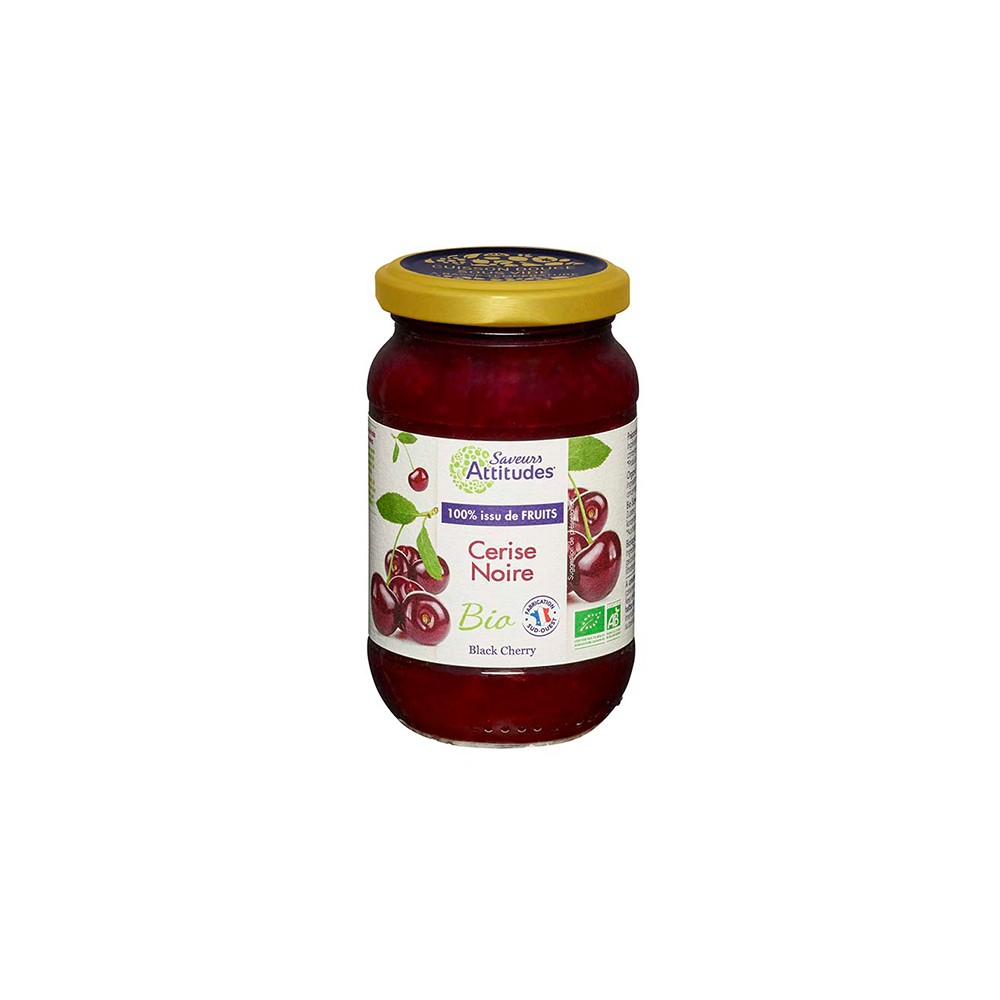 Ingrédients : cerise noire* (55%), jus concentré de raisin rectifié*, jus concentré de citron*, gélifiant : pectine de fruits, lithothamne.