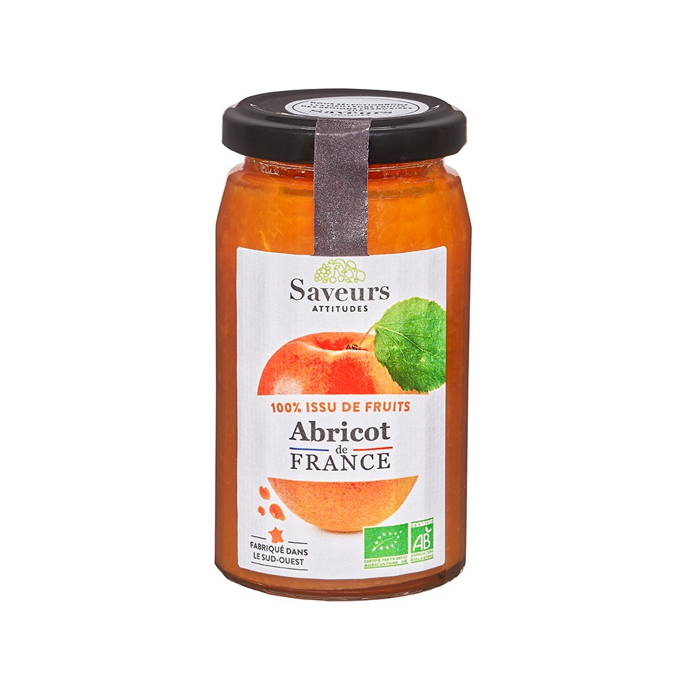 Ingrédients :abricot de France* (60%), jus concentré de raisin rectifié*, gélifiant : pectine de fruits, lithothamne. *Produits issus de l’Agriculture Biologique.