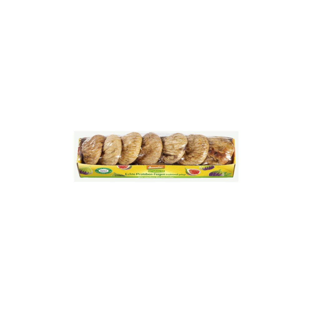 Figues demeter particulièrement douces et aromatiques issues de l'agriculture biodynamique contrôlée. Les figues sont superposées selon un motif traditionnel qui ressemble aux toits d'ardoise de la région d'Aydin. Par conséquent, ils sont appelés figues Protoben.