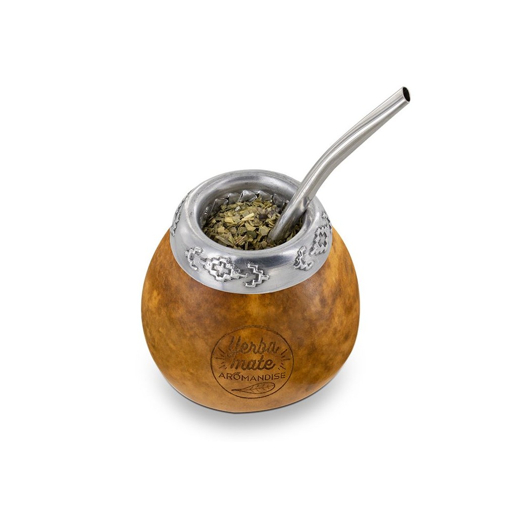 Cette calebasse creusée dans une courge sera la compagne idéale de vos moments maté, assistée de sa bombilla (paille en acier inoxydable) équipée d'un filtre intégrée vous permettant de déguster votre infusion sans en aspirer les feuilles !
