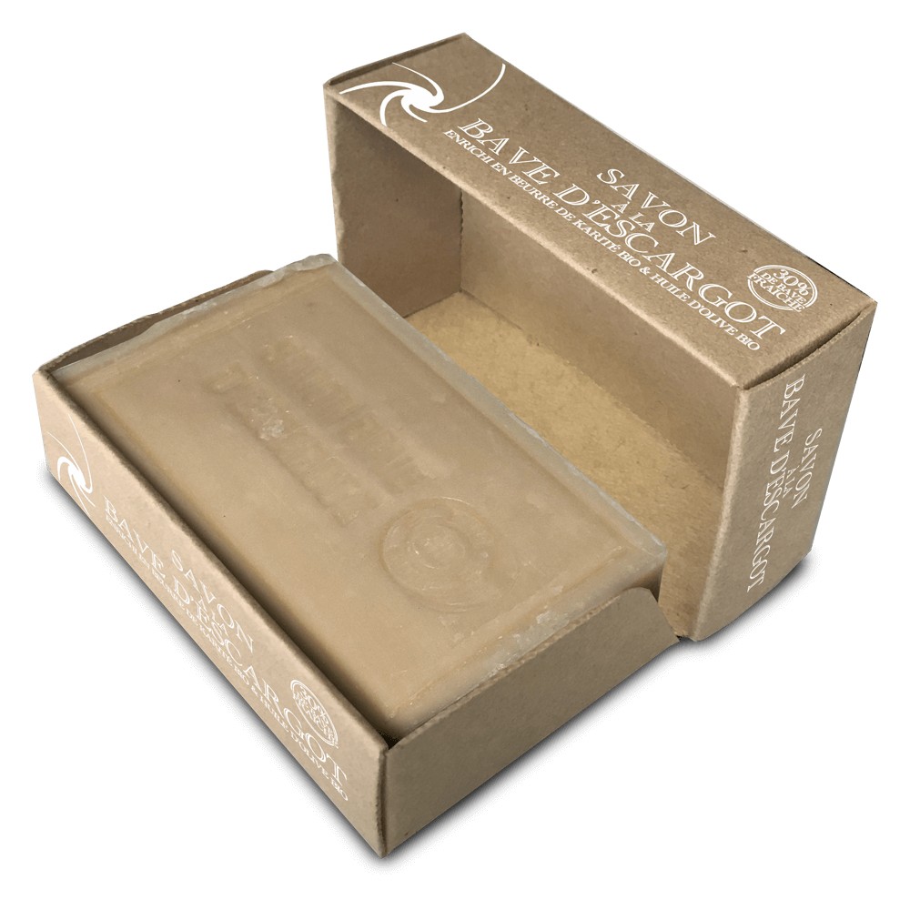 À base de 30% de bave d’escargot, enrichi en beurre de karité BIO et en huile d’olive BIO, ce savon a des vertus réparatrices uniques.