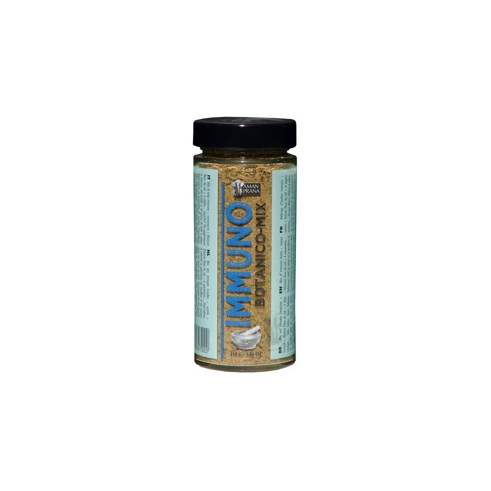 Ingrédients : 78 % mélange Immuno* (13 % thym citron*, 13 % thym*, 10 % sauge*, 8 % astragale*, 6 % baie de sumac*, 5 % poivre noir*, 5 % clou de girofle*, 5 % canelle*, 5 % Echinacea (échinacée pourpre)*, 5 % basilic tulsi (basilic sacré)*, 5 % cardamome*, 5 % romarin*, 5 % ashwagandha (ginseng indien)*, 5 % lavande*, 5 % reishi (ganoderme luisant)*, 15 % fleur de sel Khoisan, 7 % mélange d'algues marines* (nori*, laitue de mer*, kombu*, dulse*) *= Bio