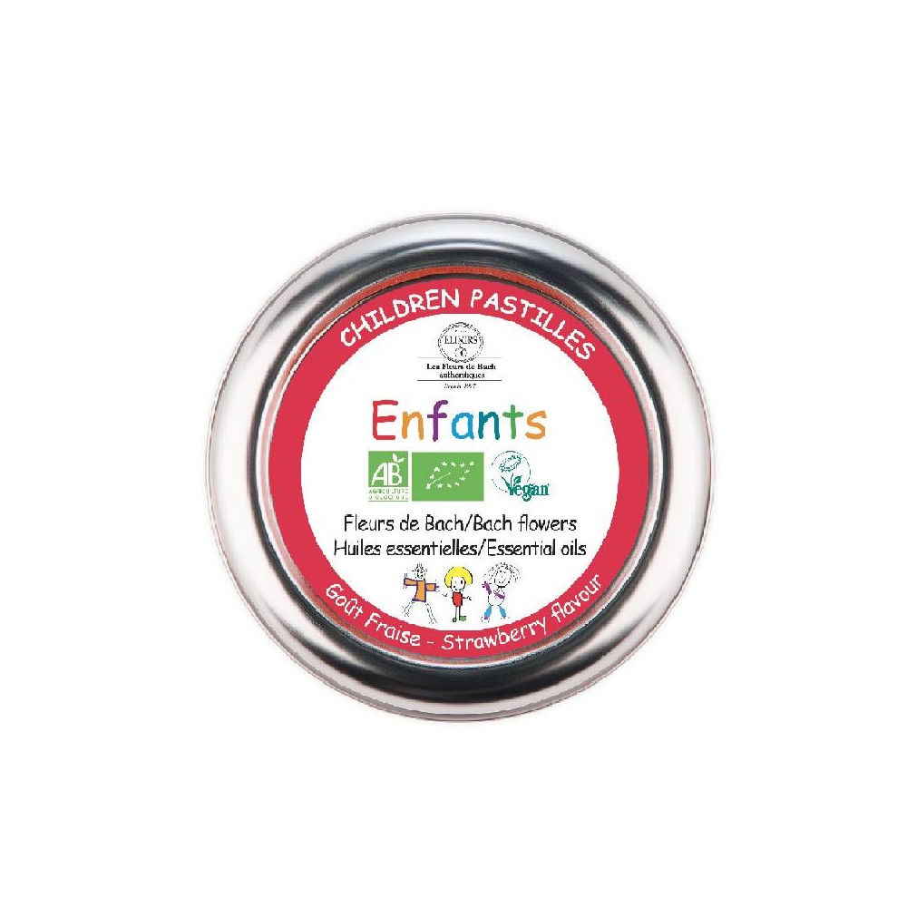 Les pastilles Enfants à la texture tendre et au délicieux goût fraise calment et apaisent les enfants agités grâce à l'alliance d'une composition spécifique de fleurs de Bach et d’huile essentielle de mandarine rouge.