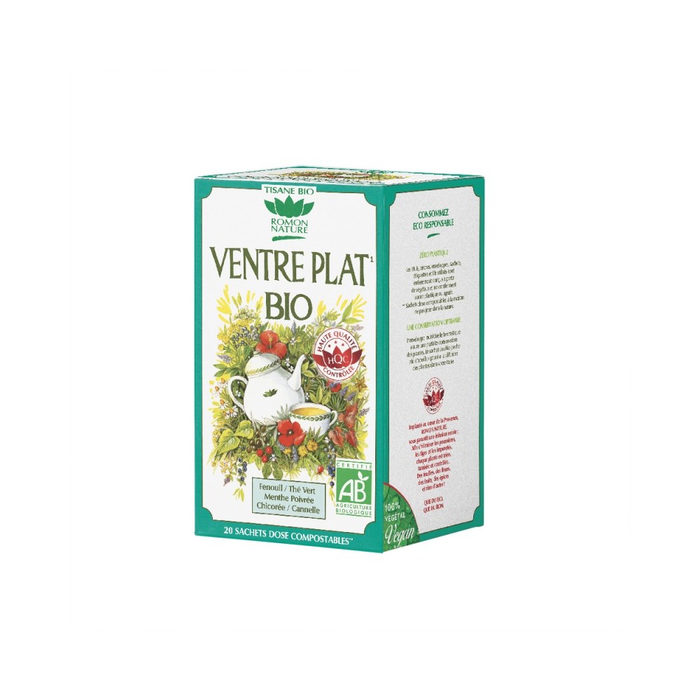 Le Fenouil et La Menthe Poivrée aident à maintenir le confort de l'estomac et limitent les sensations de ballonnements. Le Thé vert contribue à l’oxydation des graisses et la Chicorée est un soutient dans les programmes de perte de poids (en plus des mesures diététiques).