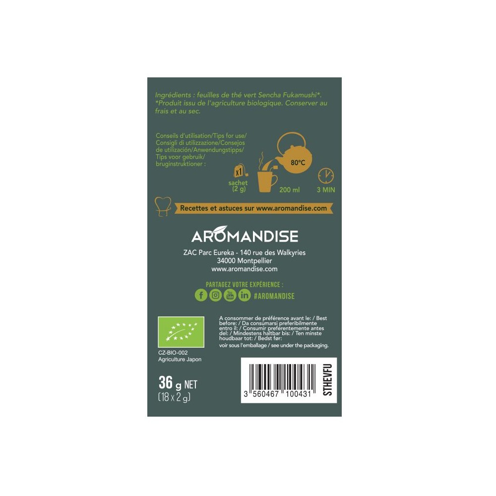 Le thé vert Fukamushi Sencha est récolté dans les jardins réputés de Chiran, préfecture de Kagoshima au Japon. Les feuilles de thé, ombragées durant sept à neuf jours avant récolte, sont étuvées deux fois plus longtemps que pour un Sencha classique. Cela révèle une saveur douce et intense, un parfum chlorophyllien et une liqueur veloutée pour une dégustation haut de gamme.