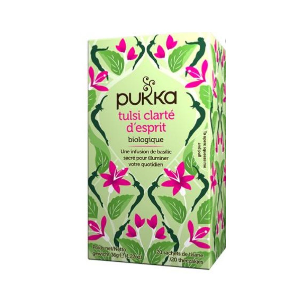 Réalisé avec des feuilles de tulsi biologiques vertes, pourpres et au citron - aussi connu sous le nom de basilic sacré.