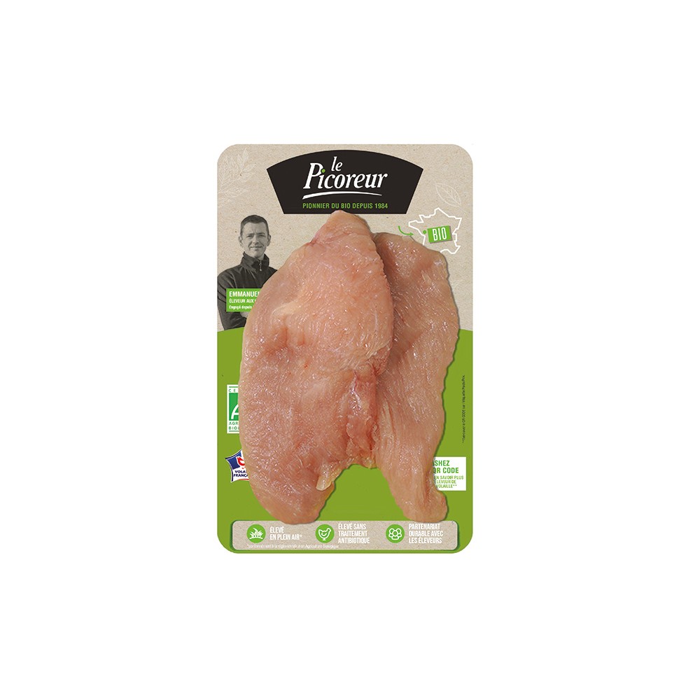 Une tendre escalope de dinde bio, finement découpée dans le filet, pour une cuisson plus rapide !